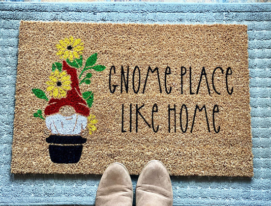 Gnome Place Like Gnome | Spring Doormat | Summer Doormat | Porch Decor | Front Door Mat | Cute Welcome Mat | Summer Decor | Gnome Doormat