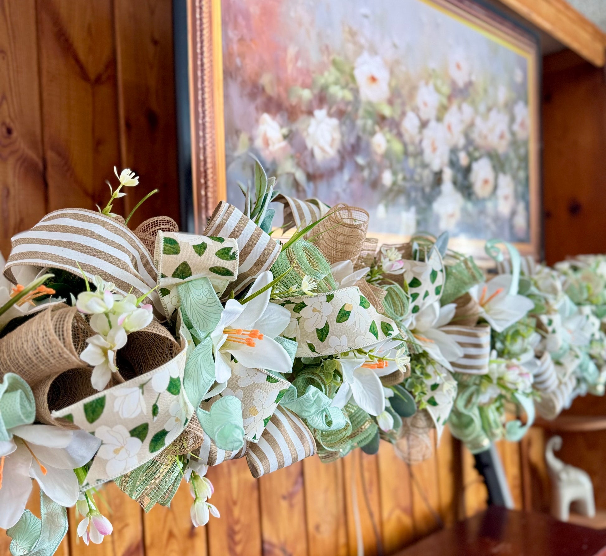Premium materials: High-quality faux greenery and designer ribbons in burlap, striped, and sage tones.
