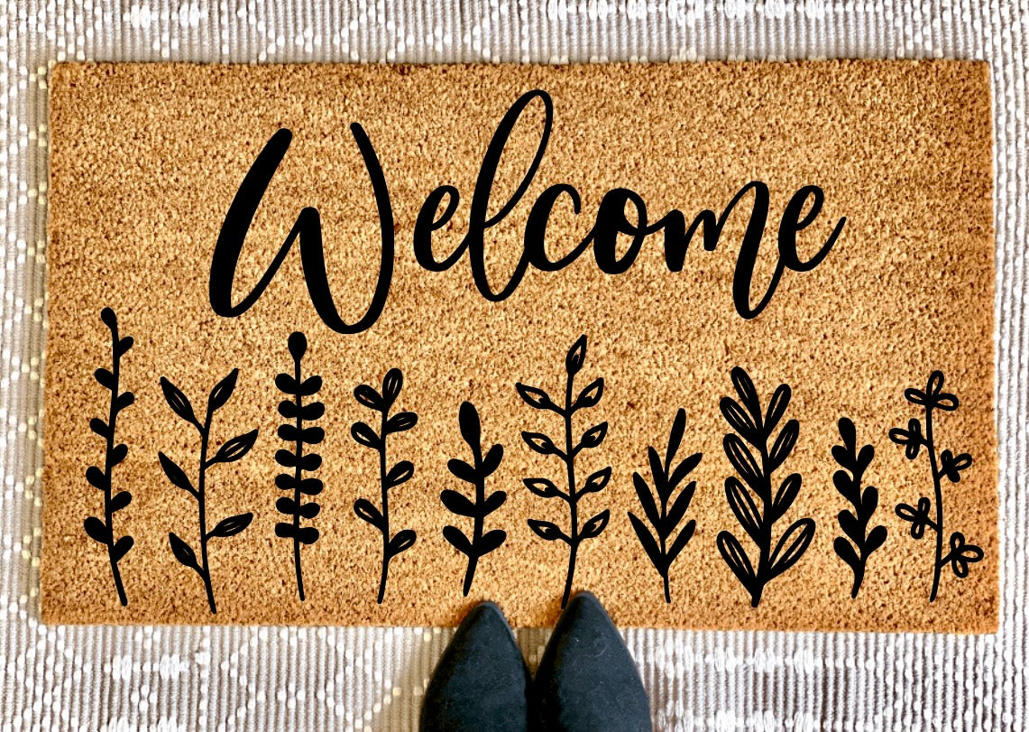 - Our welcome mats have a slip resistant pvc backing with 100% coir front. The coir is naturally made with coconut husks. Each one has a variation of shades of the husks, which make each doormat completely unique!