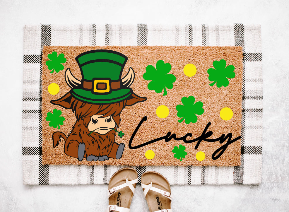 St. Patrick’s Day Highland Cow Doormat | St. Patrick’s Decor | Spring Doormat