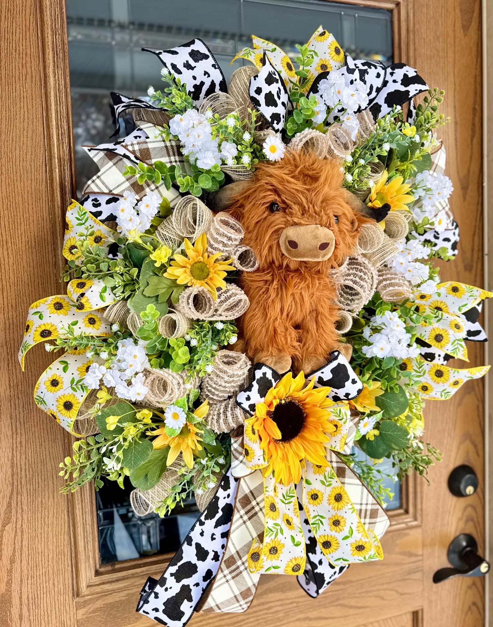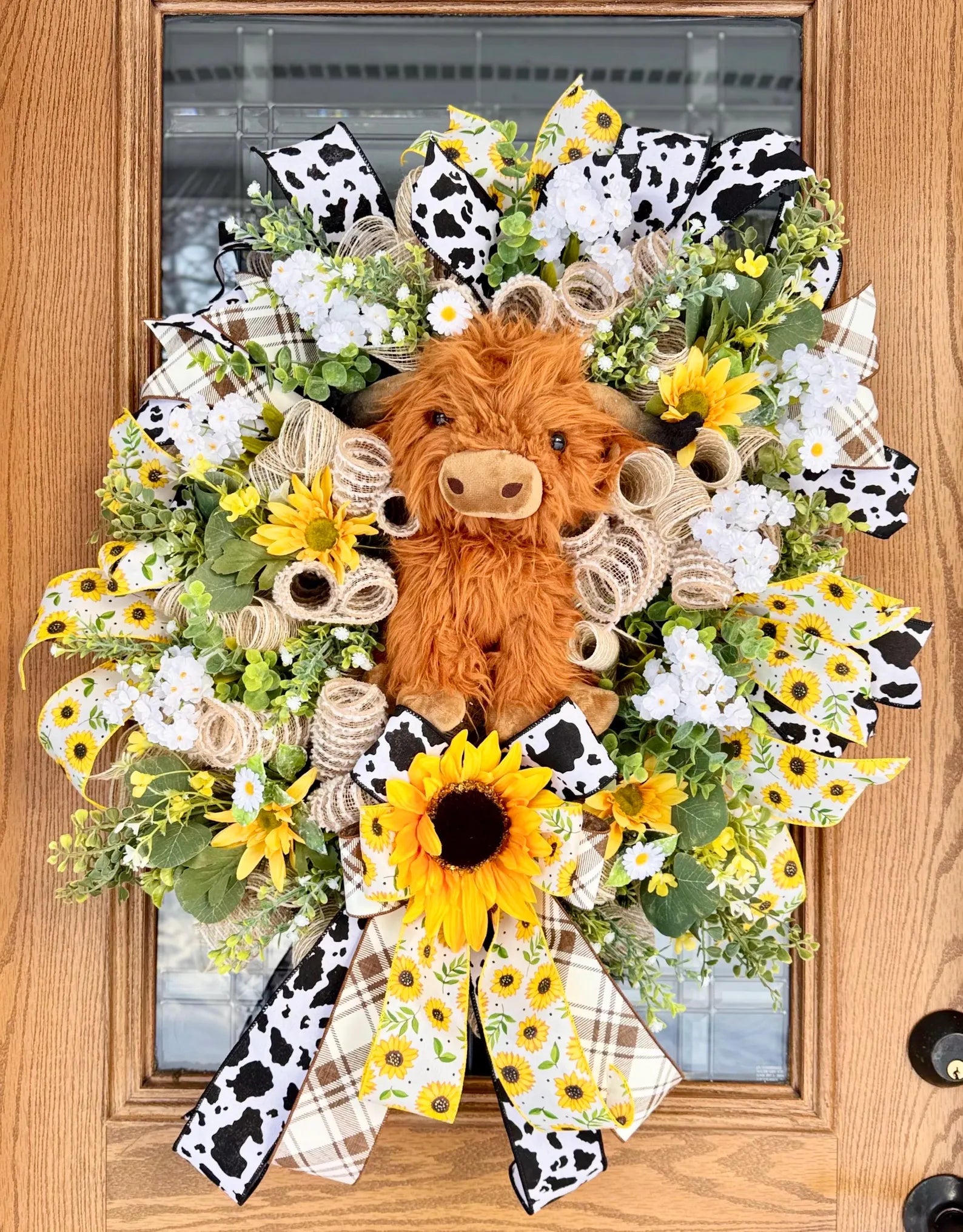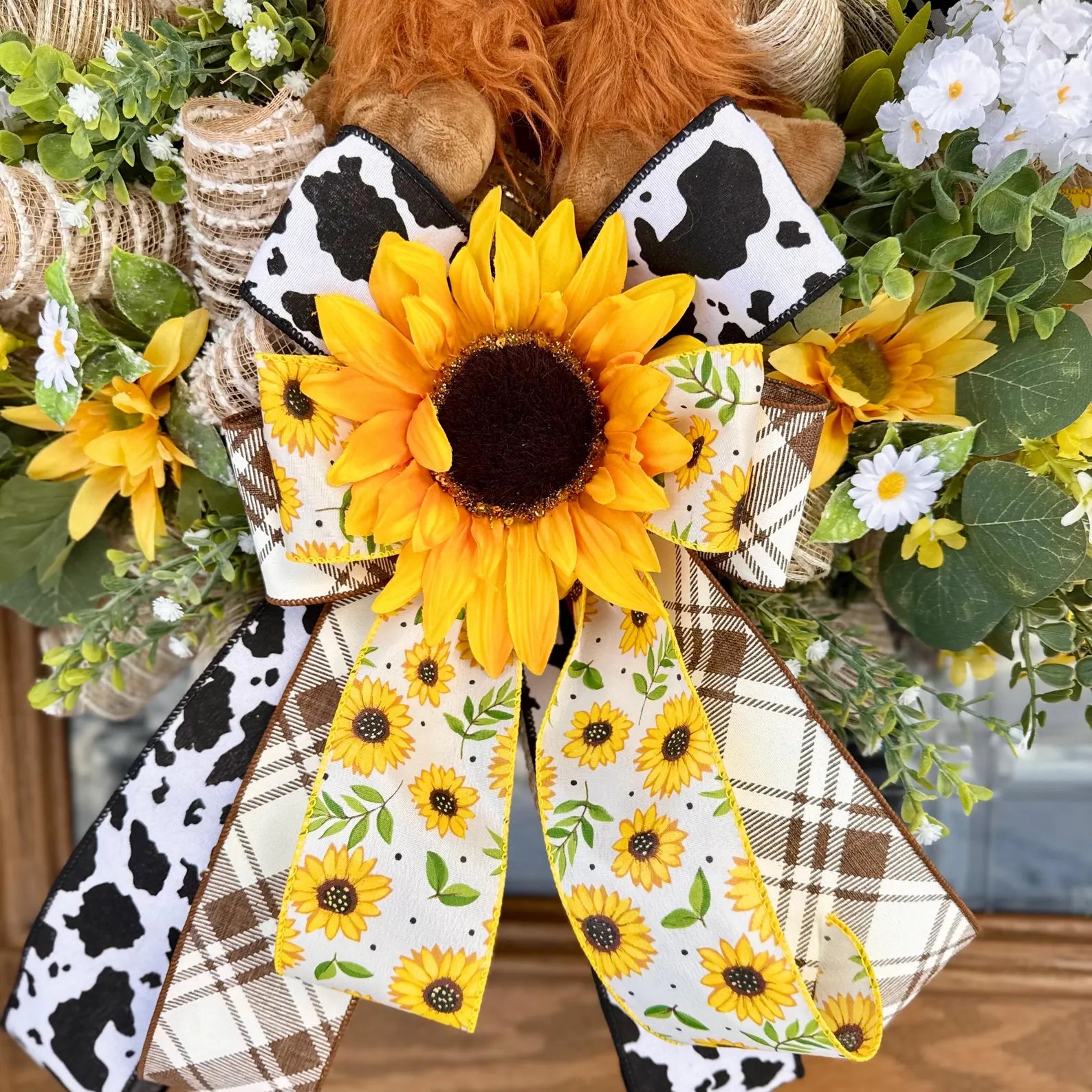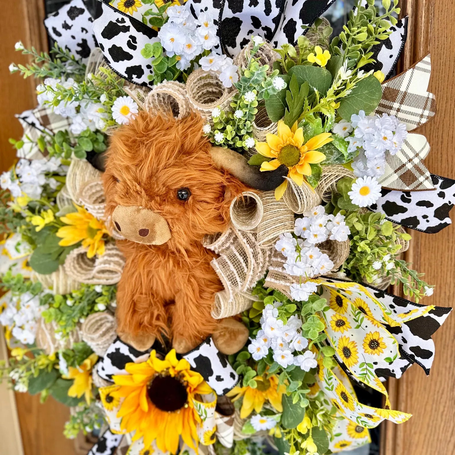 Highland Cow Door Wreath | Spring Wreath | Floral Wreath | Spring Door Decor | Farmhouse Wreath | Farmhouse Porch Decor