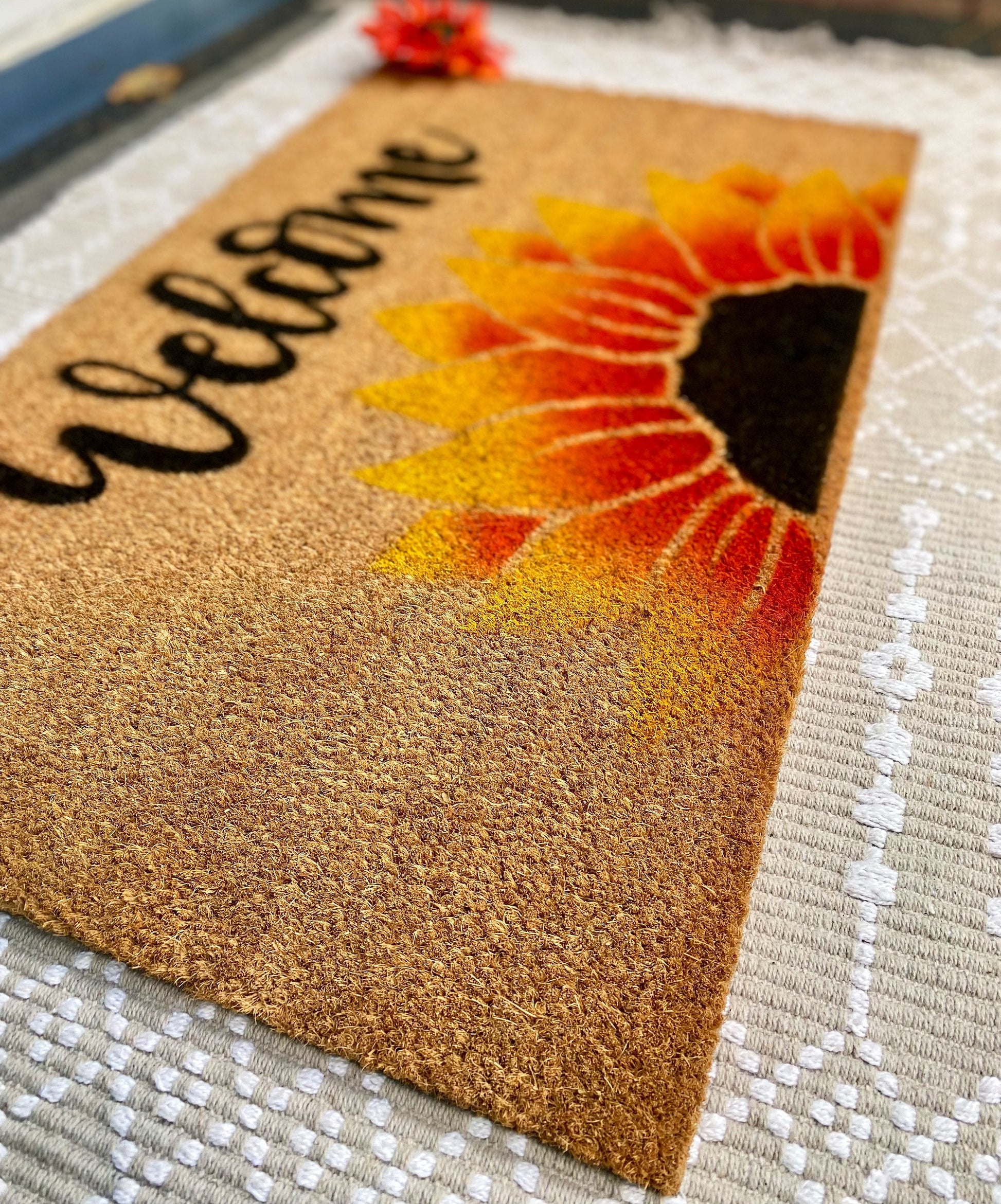 This colorful sunflower doormat is a vibrant addition to your front entrance!