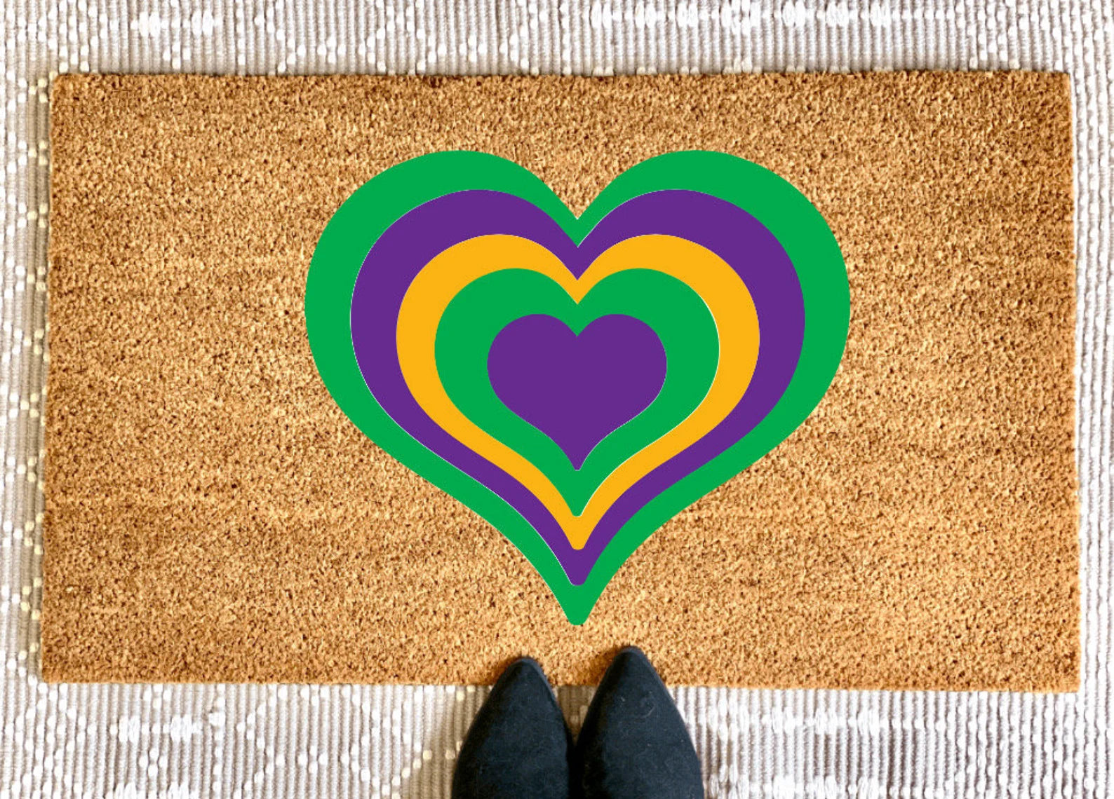 Mardi Gras Heart Doormat | Mardi Gras Doormat | Mardi Gras Decor