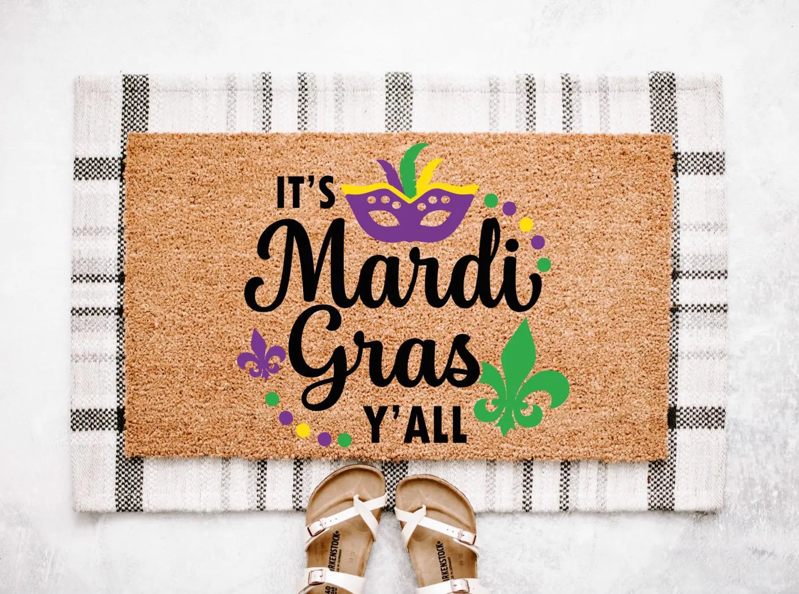 This Mardi Gras Doormat makes for a fun and festive addition to your home. This door mat is perfect for your housewarming gift or a great way to add some Mardi Gras decor!
