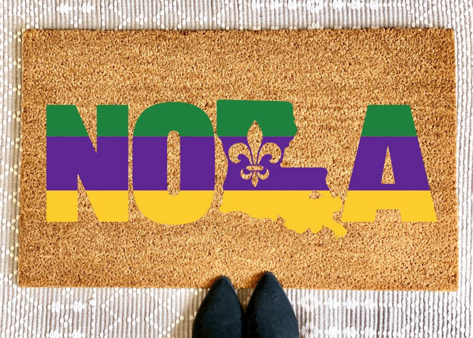 NOLA Mardi Gras Doormat | Fleur De Lis Doormat | Mardi Gras Decor