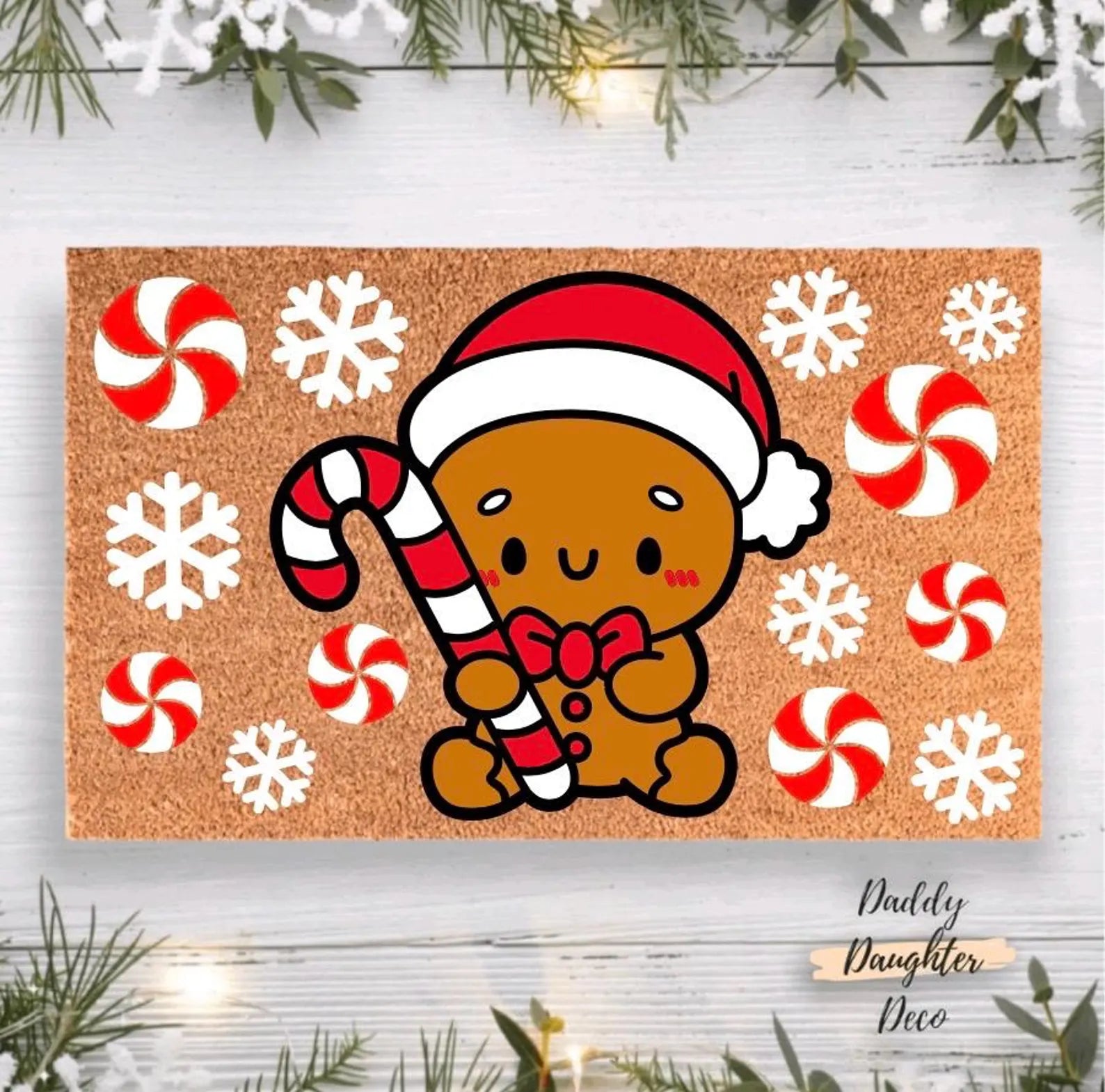 Gingerbread Doormat | Christmas Doormat | Peppermint Doormat | Christmas Porch Decor