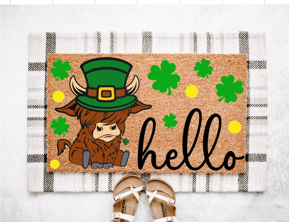 St. Patrick’s Day Highland Cow Doormat | St. Patrick’s Decor | Spring Doormat